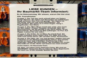 ![]() ![]() ![]() | Das Baumarkt-Team informiert Bild (190.49 KB) Lustiges → klasse Sprüche und Witze | Lustiges → klasse Sprüche und Witze | heute-12:09 | |||