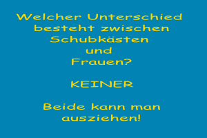 Weitere Unterkategorien: Comedy Corona Fails + Hoppalas Frauen, Mädels, Girls HB-Männchen klasse Sprüche und Witze Knallerfrauen Ladykracher lustige KI Lustige Werbespots Lustiges von Amazon Lustiges von ebay Mit Tieren neue Wörter braucht das Land Paul Panzer People are awesome Rätsel Quiz Scherzfragen Shows Spiele Streiche Pranks Textwitze Versteckte Kamera WhatsApp Wissenswertes witzige Bilder witzige Statistikauswertungen frauenfeindlich männerfeindlich