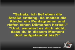 ![]() ![]() ![]() | Schatz, ich lief eben die Straße entlang, da malten die... Bild (40.76 KB) von Fossy am 12. März 2026 um 09:30 Uhr Lustiges → klasse Sprüche und Witze | Lustiges → klasse Sprüche und Witze | 12.03.-09:30 | Fossy | ||