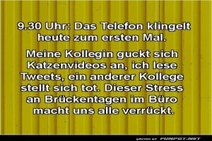 | Brückentage im Büro Bild (112.76 KB) von Jessica46 am 01. Januar 2026 um 12:30 Uhr Lustiges → klasse Sprüche und Witze | Lustiges → klasse Sprüche und Witze | heute-12:30 | Jessica46 | ||