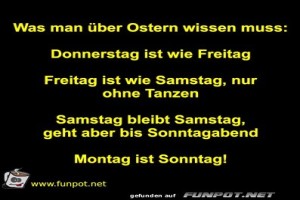 | Über Ostern Bild (36.02 KB) von Nele68 am 18. April 2026 um 10:00 Uhr Lustiges → klasse Sprüche und Witze Durch den funpot-Bildgenerator eingestellt. | Lustiges → klasse Sprüche und Witze | 18.04.-10:00 | Nele68 | ||