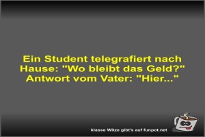 | Ein Student telegrafiert nach Hause Bild (24.22 KB) von Fossy am 01. Januar 2026 um 09:32 Uhr Lustiges → klasse Sprüche und Witze | Lustiges → klasse Sprüche und Witze | heute-09:32 | Fossy | ||