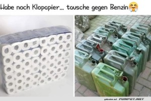 1 | ![]() ![]() ![]() | Tauschhandel 2.0: Klopapier gegen Benzin! Bild (70.88 KB) 1Lustiges → witzige Bilder | Lustiges → witzige Bilder | 12.03.-09:38 | Clarissa | |