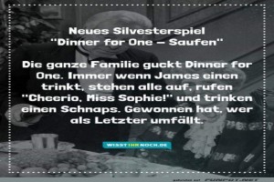 | Dinner for one Saufen Bild (83.35 KB) von Caroline am 31. Dezember 2025 um 09:57 Uhr Lustiges → klasse Sprüche und Witze | Lustiges → klasse Sprüche und Witze | heute-09:57 | Caroline | ||