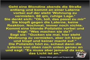 | Geht eine Blondine abends die Straße entlang und kommt an... Bild (77.68 KB) 2Lustiges → klasse Sprüche und Witze | Lustiges → klasse Sprüche und Witze | 18.04.-10:26 | Fossy | |