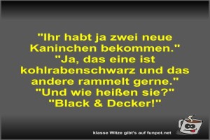 | Ihr habt ja zwei neue Kaninchen bekommen Bild (39.28 KB) von Fossy am 04. April 2026 um 11:25 Uhr Lustiges → klasse Sprüche und Witze | Lustiges → klasse Sprüche und Witze | heute-11:25 | Fossy | ||