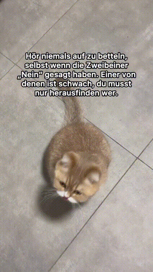 | Kätzchen will zum Aquarium Online-Video von Valentina am 11. April 2026 um 09:19 Uhr Lustiges → Mit Tieren → lustige Katzen | Lustiges → Mit Tieren → lustige Katzen | heute-09:19 | Valentina | ||