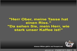 | Herr Ober, meine Tasse hat einen Riss Bild (25.3 KB) 2Lustiges → klasse Sprüche und Witze | Lustiges → klasse Sprüche und Witze | 28.02.24-12:48 | Fossy | |