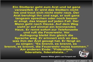 | Ein Stotterer geht zum Arzt und ist ganz verzweifelt Bild (67.92 KB) 3Lustiges → klasse Sprüche und Witze | Lustiges → klasse Sprüche und Witze | 24.02.24-12:41 | Fossy | |