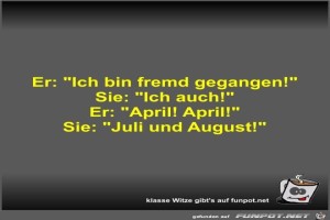| Er: "Ich bin fremd gegangen!" Bild (24.08 KB) 1Lustiges → klasse Sprüche und Witze | Lustiges → klasse Sprüche und Witze | 23.02.24-17:20 | Fossy | |