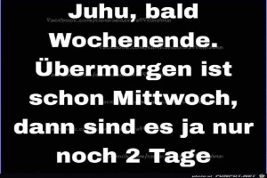 | Bald Wochenende Bild (72.45 KB) 14Lustiges → klasse Sprüche und Witze | Lustiges → klasse Sprüche und Witze | 20.02.24-09:40 | Pfahl | |
