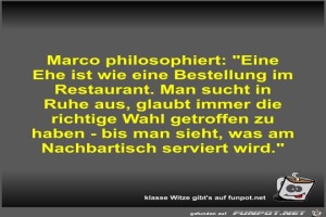 | Marco philosophiert Bild (42.16 KB) 1Lustiges → klasse Sprüche und Witze | Lustiges → klasse Sprüche und Witze | 20.02.24-09:55 | Fossy | |