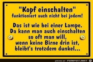 | Kopf einschalten Bild (44.78 KB) 5Lustiges → klasse Sprüche und Witze | Lustiges → klasse Sprüche und Witze | 12.02.24-09:37 | Keule56 | |