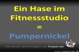 | Hase im Fitnessstudio Bild (55.55 KB) 2Lustiges → klasse Sprüche und Witze Pumpernickel hört sich sogar richtig gut an :-) | Lustiges → klasse Sprüche und Witze | 12.02.24-09:46 | ||
