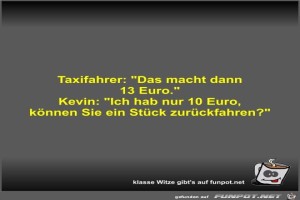 | Taxifahrer: Das macht dann 13 Euro Bild (23.14 KB)  6Lustiges → klasse Sprüche und Witze  | Lustiges → klasse Sprüche und Witze | 09.02.24-16:39 | Fossy | |