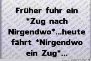 | Zug nach Nirgendwo Bild (88.08 KB) 3Lustiges → klasse Sprüche und Witze | Lustiges → klasse Sprüche und Witze | 26.01.24-11:41 | Keule56 | |
