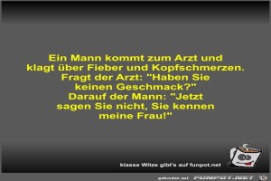 | Ein Mann kommt zum Arzt und klagt über Fieber und... Bild (32.05 KB) 2Lustiges → klasse Sprüche und Witze | Lustiges → klasse Sprüche und Witze | 06.11.23-13:28 | Fossy | |