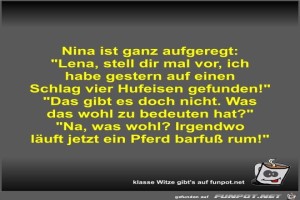 | Nina ist ganz aufgeregt Bild (44.99 KB) 2Lustiges → klasse Sprüche und Witze | Lustiges → klasse Sprüche und Witze | 05.11.23-14:13 | Fossy | |