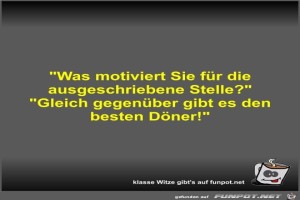 | Was motiviert Sie für die ausgeschriebene Stelle? Bild (26.47 KB) 3Lustiges → klasse Sprüche und Witze | Lustiges → klasse Sprüche und Witze | 02.11.23-10:02 | Fossy | |