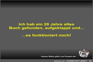 | Ich hab ein 20 Jahre altes Buch gefunden Bild (21.45 KB) 4Lustiges → klasse Sprüche und Witze | Lustiges → klasse Sprüche und Witze | 01.11.23-18:38 | Fossy | |