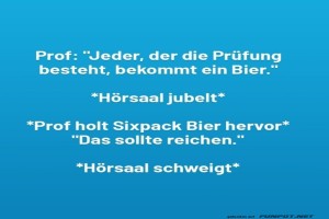 | Bier-Boni im Hörsaal: Ein Sixpack reicht! Bild (57.52 KB) 2Lustiges → klasse Sprüche und Witze | Lustiges → klasse Sprüche und Witze | 11.07.-12:34 | Zicke | |