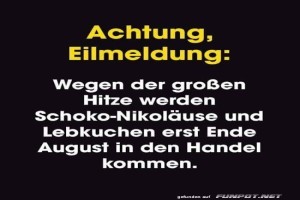 | Schoko-Nikoläuse erst Ende August verfügbar Bild (81.51 KB) 3Lustiges → klasse Sprüche und Witze | Lustiges → klasse Sprüche und Witze | 10.07.-08:11 | Annika-71 | |