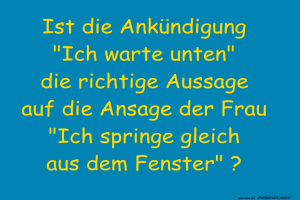 | Warten oder Springen? Eine Fensterfrage! Bild (117.52 KB) von Paule123 am 09. Juli 2025 um 13:22 Uhr Lustiges → klasse Sprüche und Witze | Lustiges → klasse Sprüche und Witze | 09.07.-13:22 | Paule123 | ||