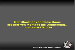 | Der Glöckner von Notre Dame arbeitet von Montags bis... Bild (20.23 KB) 4Lustiges → klasse Sprüche und Witze | Lustiges → klasse Sprüche und Witze | 06.07.-18:20 | Fossy | |