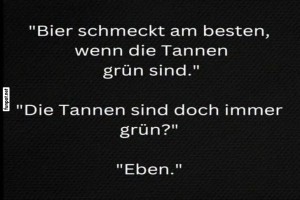 | Tannenweisheit: Bierlogik erklärt Bild (116.01 KB) 2Lustiges → klasse Sprüche und Witze | Lustiges → klasse Sprüche und Witze | 06.07.-19:24 | ||