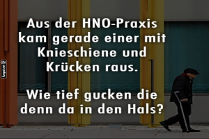 | Verwirrende Beobachtung vor der HNO-Praxis Bild (322.77 KB) 3Lustiges → klasse Sprüche und Witze | Lustiges → klasse Sprüche und Witze | 07.07.-08:09 | ||