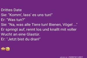 | Missverständnis beim dritten Date Bild (45.93 KB) 18Lustiges → klasse Sprüche und Witze | Lustiges → klasse Sprüche und Witze | 06.07.-10:36 | ||