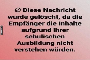 | Nachricht aufgrund Schulbildung gelöscht Bild (39.45 KB) 2Lustiges → klasse Sprüche und Witze | Lustiges → klasse Sprüche und Witze | 03.07.-10:21 | ||