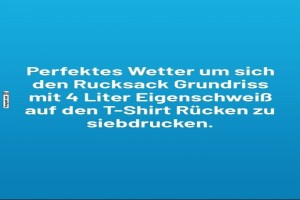 | Hitze und der ultimative Rucksackdruck Bild (81.51 KB) von Samu51 am 03. Juli 2025 um 08:32 Uhr Lustiges → klasse Sprüche und Witze | Lustiges → klasse Sprüche und Witze | 03.07.-08:32 | Samu51 | ||