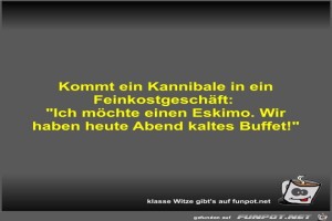 | Kommt ein Kannibale in ein Feinkostgeschäft Bild (25.4 KB) 2Lustiges → klasse Sprüche und Witze | Lustiges → klasse Sprüche und Witze | 04.01.23-10:35 | Fossy | |