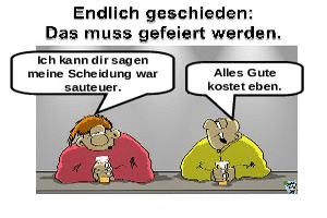 | Endlich geschieden Powerpoint (7.74 MB) von lucky am 23. Oktober 2025 um 21:58 Uhr Lustiges Wenn man heiratet, dann erhofft man sich ein gemeinsames Leben bis zum Tod. Allerdings wird statistisch gesehen jede dritte Ehe geschieden. Was sehr schade ist. Seit einigen Jahren, feiern allerdings sogar einige Leute die Scheidung mit einer Party. Mehr zu diesem Thema erfährst du in dieser durchaus aufschlussreichen Präsentation. | Lustiges | 23.10.-21:58 | lucky | ||