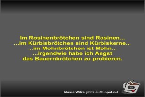 | Im Rosinenbrötchen sind Rosinen Bild (28.01 KB) 1Lustiges → klasse Sprüche und Witze | Lustiges → klasse Sprüche und Witze | 23.10.-13:04 | Fossy | |