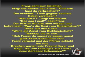 | Franz geht zum Beichten Bild (70.6 KB) von Fossy am 23. Oktober 2025 um 10:33 Uhr Lustiges → klasse Sprüche und Witze | Lustiges → klasse Sprüche und Witze | 23.10.-10:33 | Fossy | ||