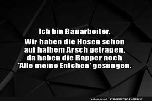 | Bauarbeiter-Humor: Trendsetter der Vergangenheit Bild (57.78 KB) 3Lustiges → klasse Sprüche und Witze | Lustiges → klasse Sprüche und Witze | 15.02.-10:18 | Julia1991 | |