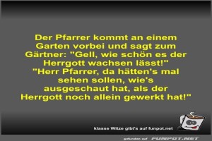 | Witz über den Pfarrer und den Gärtner Bild (40.22 KB) 1Lustiges → klasse Sprüche und Witze | Lustiges → klasse Sprüche und Witze | 12.02.-11:18 | Fossy | |