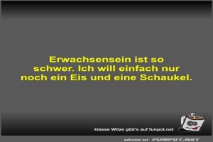 | Erwachsensein ist so schwer Bild (21.96 KB) 2Lustiges → klasse Sprüche und Witze | Lustiges → klasse Sprüche und Witze | 07.02.-17:56 | Fossy | |