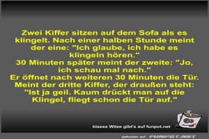 | Zwei Kiffer sitzen auf dem Sofa als es klingelt Bild (50.35 KB) 1Lustiges → klasse Sprüche und Witze | Lustiges → klasse Sprüche und Witze | 07.02.-11:01 | Fossy | |