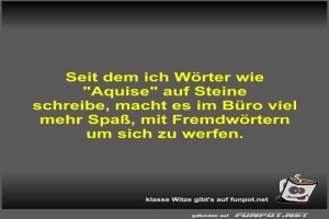 | Seit dem ich Wörter wie "Aquise" auf Steine schreibe Bild (28.95 KB) 4Lustiges → klasse Sprüche und Witze | Lustiges → klasse Sprüche und Witze | 03.02.-12:38 | Fossy | |