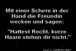| Humorvolle Aussage über Haarschnitt Bild (22.47 KB) 1Lustiges → klasse Sprüche und Witze | Lustiges → klasse Sprüche und Witze | 26.01.-06:01 | ||