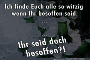 | Besoffen Bild (67.26 KB) 2Lustiges → klasse Sprüche und Witze | Lustiges → klasse Sprüche und Witze | 24.07.24-08:18 | ||