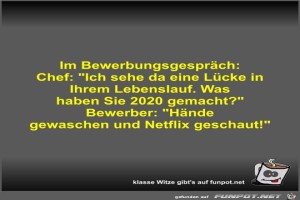 |  4 |       | Im Bewerbungsgespräch Bild (32.62 KB)  4 Lustiges → klasse Sprüche und Witze und Corona | Lustiges → klasse Sprüche und Witze und Corona | 27.04.21-14:38 | Fossy | |