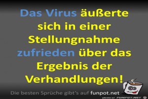 | Das Virus ist zufrieden Bild (77.96 KB) 7Lustiges → klasse Sprüche und Witze und Corona An Stelle des Virus wäre ich mit vielen Entscheidungen auch sehr zufrieden. Leider! | Lustiges → klasse Sprüche und Witze und Corona | 07.04.21-10:09 | Fossy | |