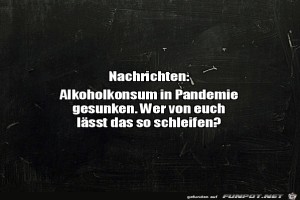 | Wer trinkt nicht mehr so viel? Bild (72.92 KB) 6Lustiges → klasse Sprüche und Witze und Corona | Lustiges → klasse Sprüche und Witze und Corona | 28.03.21-09:28 | ||