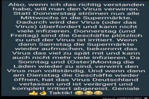 | Corona und Ostern Bild (28.05 KB) 7Lustiges → klasse Sprüche und Witze und Corona Weiß das zufällig einer..... | Lustiges → klasse Sprüche und Witze und Corona | 27.03.21-17:36 | Jamesbd | |