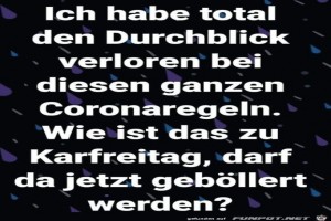 | Darf man an Karfreitag böllern? Bild (82.77 KB) 2Lustiges → klasse Sprüche und Witze und Corona | Lustiges → klasse Sprüche und Witze und Corona | 30.03.21-08:17 | ||