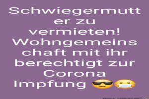 | Schwiegermutter zu vermieten Bild (89.29 KB) von wn6699 am 23. März 2021 um 15:53 Uhr Lustiges → klasse Sprüche und Witze und Corona | Lustiges → klasse Sprüche und Witze und Corona | 23.03.21-15:53 | wn6699 | ||
